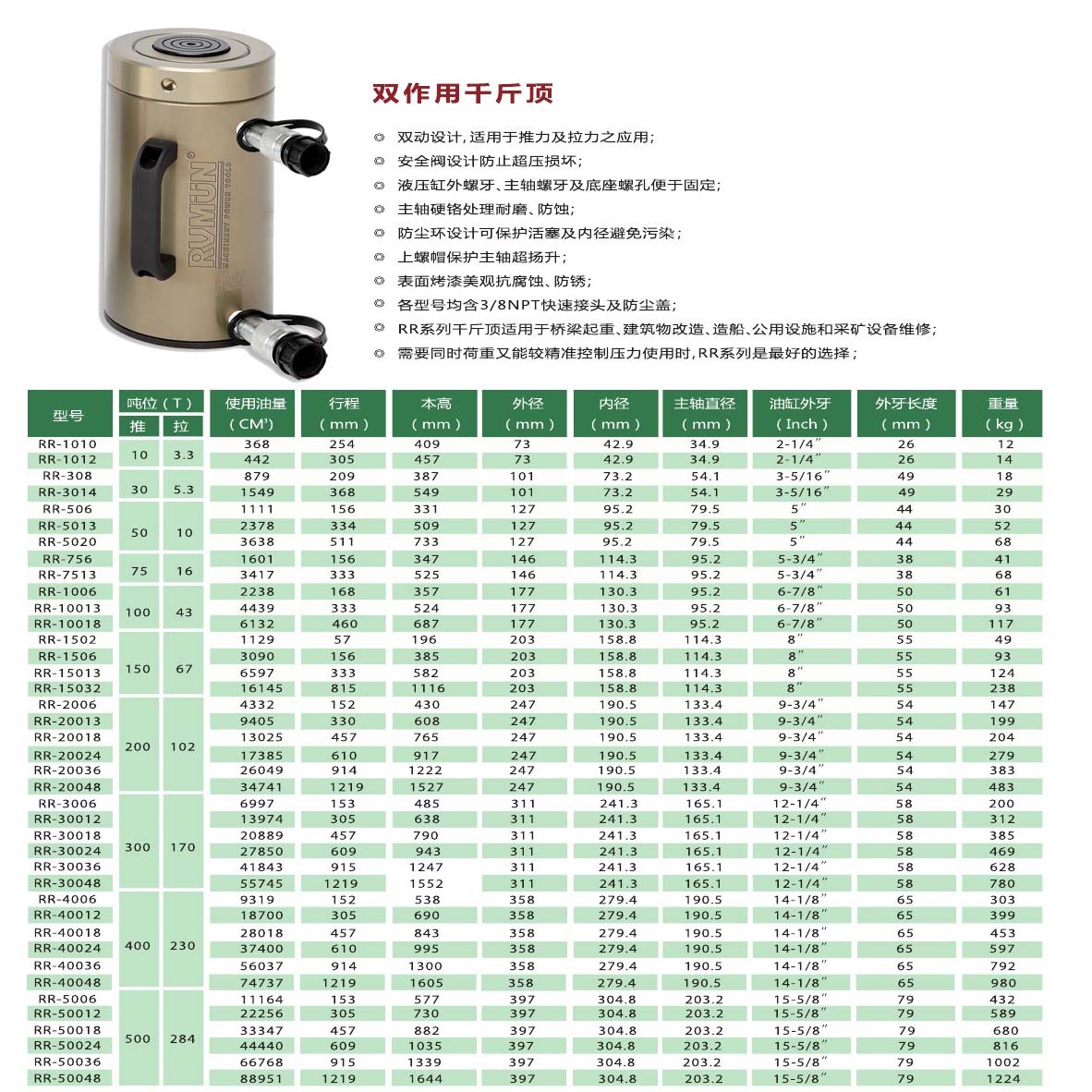 ★若需要更大規(guī)格的液壓千斤頂或定制滿足不同工況的特殊雙作用液壓千斤頂請與RVMUN銷售工程師或就近分銷商聯(lián)系