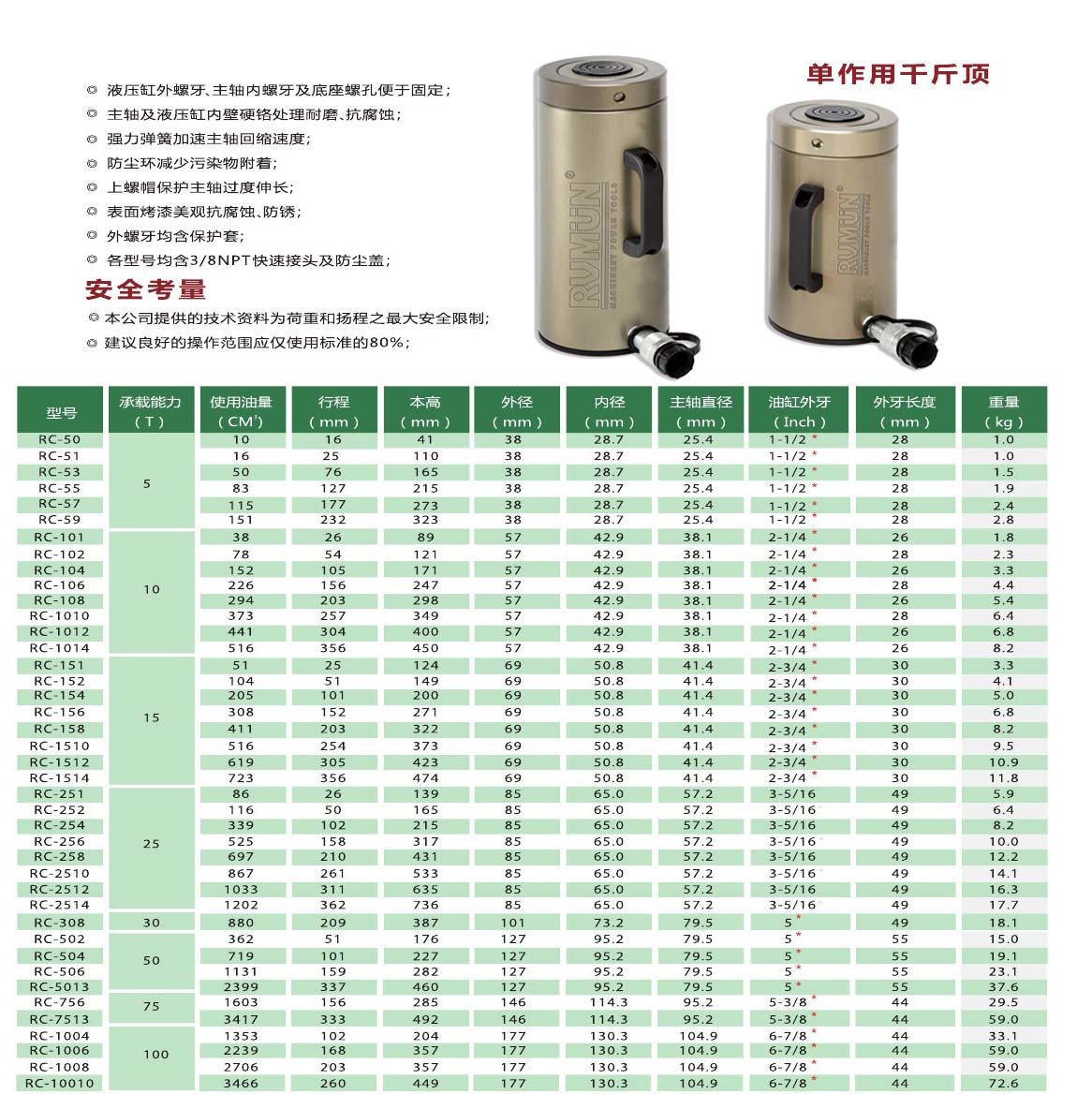 ★若需要更大規(guī)格的液壓千斤頂或定制滿足不同工況的特殊單作用液壓千斤頂請與RVMUN銷售工程師或就近分銷商聯(lián)系